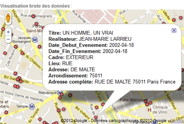 La carte des lieux de tournage parisiens entre 2002 et 2008 est un peu dans la même veine. Et on doit bien avouer qu’on se laisse facilement prendre au jeu, regardant à quels films font référence les points rouges qui figurent juste à côté de notre immeuble.